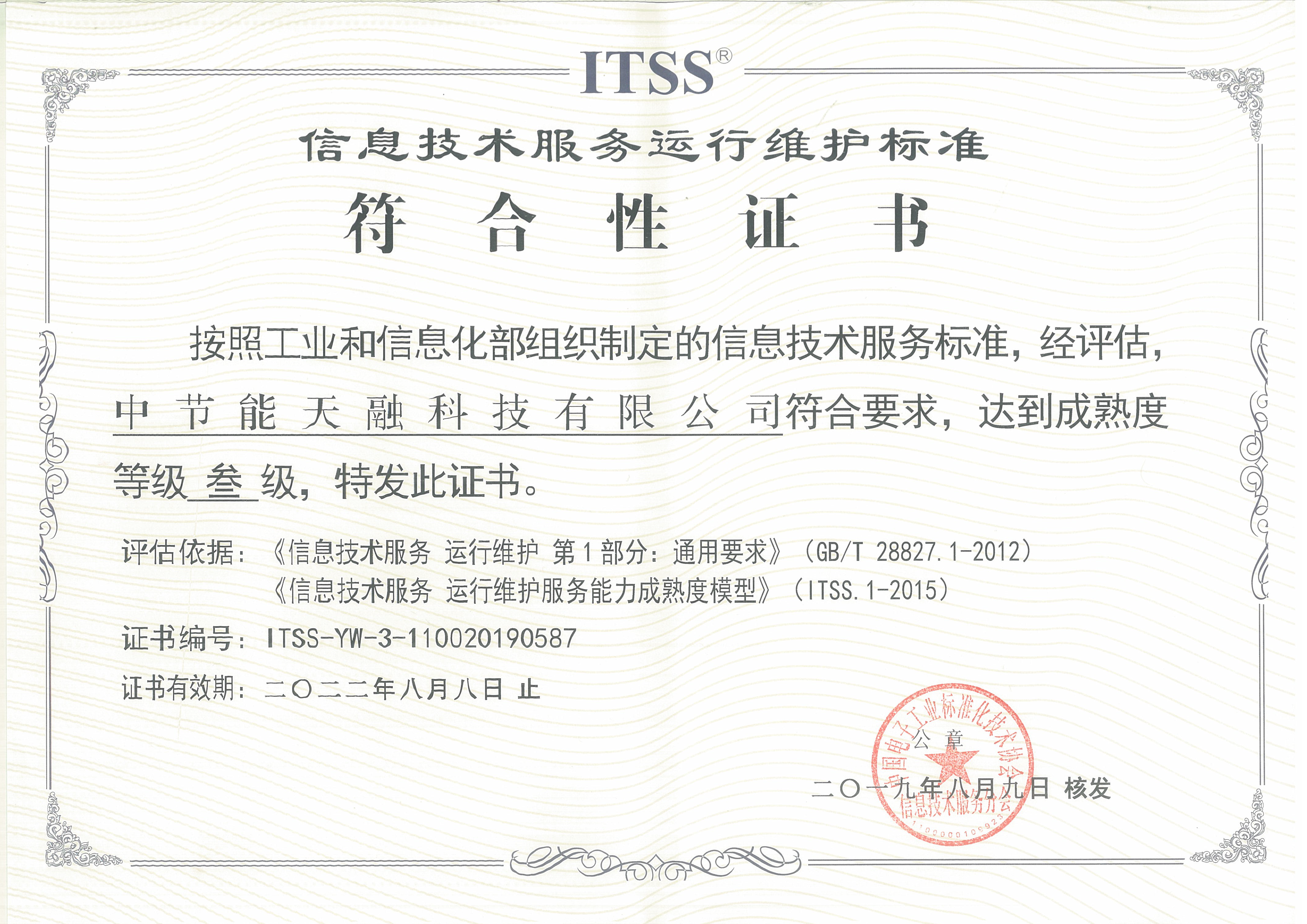 ITSS信息技术服务运行维护标准符合性三级