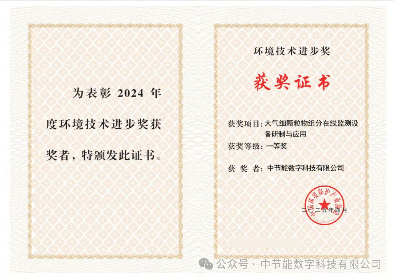 近日,由中节能数字科技有限公司、中国环境监测总站和北京大学等单位联合承担的“大气细颗粒物组分在线监测设备研制与应用”项目荣获环境技术进步奖一等奖。